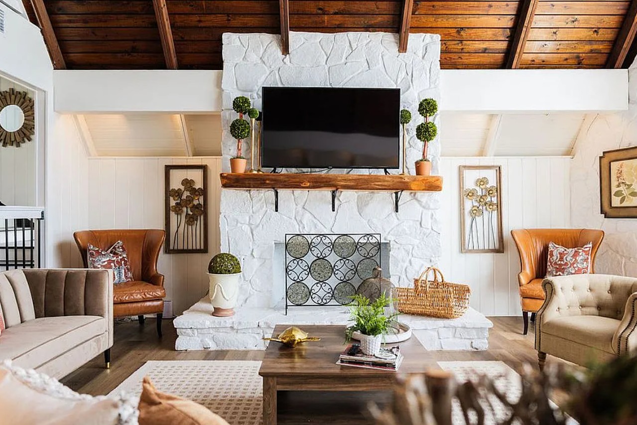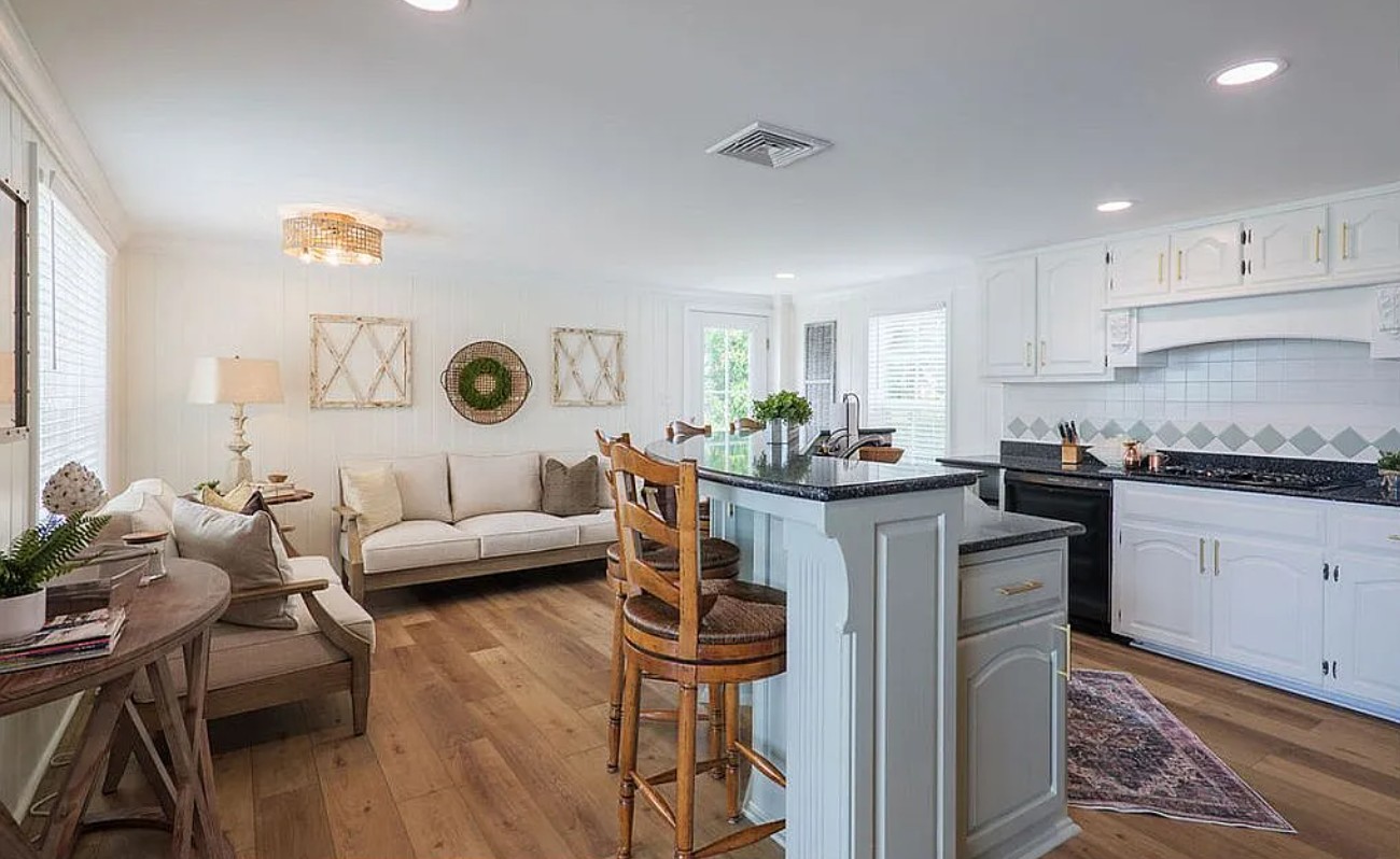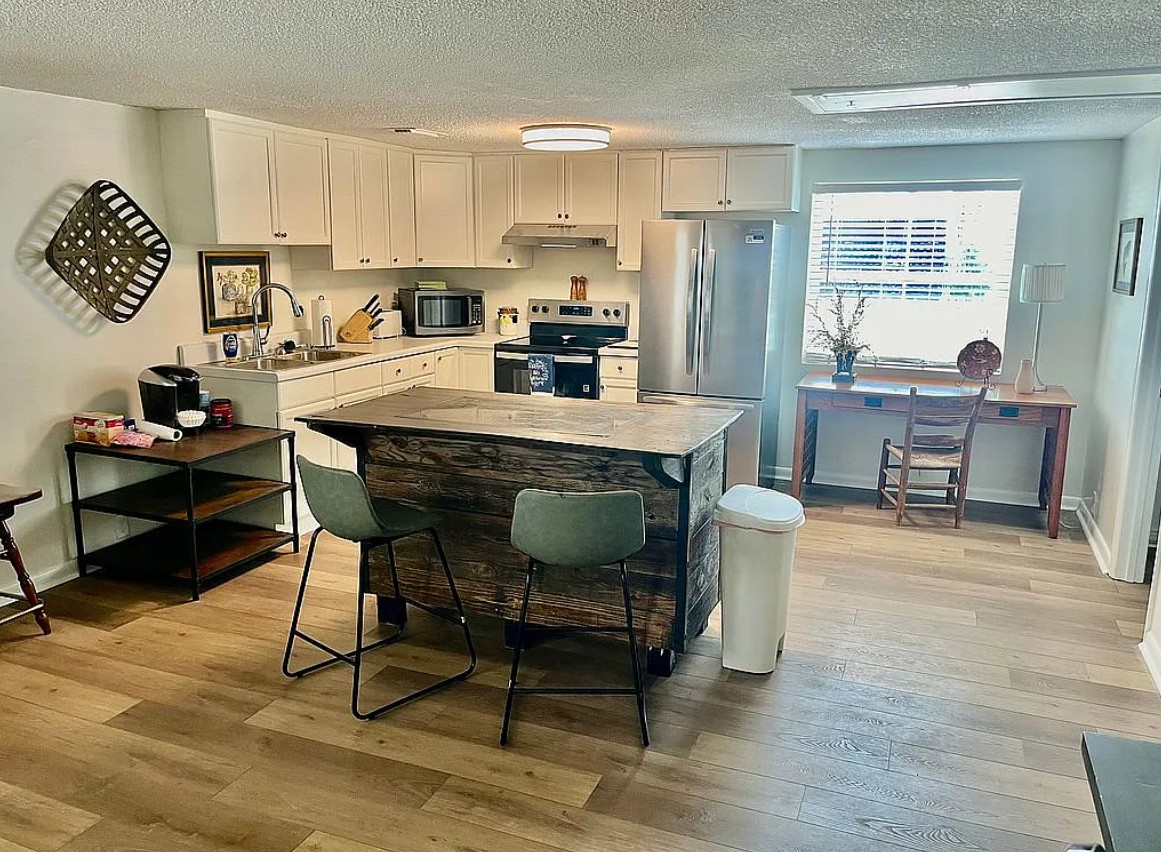 The main house offers 3 bedrooms and 2 bathrooms across 2,157+ square feet, with a grand two-story living room featuring a stone fireplace, large eat in kitchen with Cambria stone countertops, gas cooktop, and all-new appliances. Sliding and French doors open to a wraparound deck overlooking the beautifully landscaped lawn, pool, and dock. The luxurious master suite includes built-in cabinets, a sitting area, and stunning lake views.
