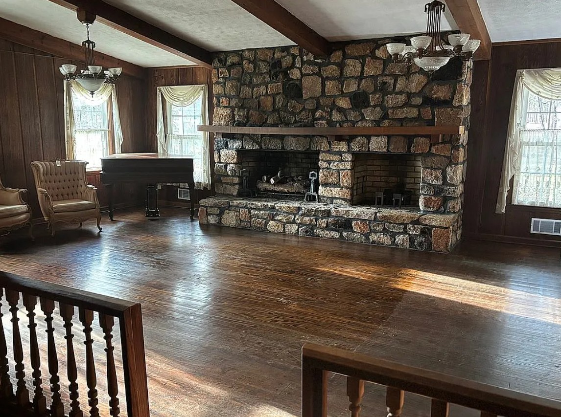 This unique 4 bedroom, 4 bathroom barn-style home for sale by owner in Swainsboro, GA sits on approximately 3 acres within the city limits and offers a rare blend of post-and-beam architectural charm and modern upgrades. Inspired by classic barnhouse design, the home features striking original pine hardwood floors, a large stone fireplace with gas logs, and a spacious two-story layout filled with warmth and character. The generous floor plan includes a welcoming living area, separate kitchen and dining spaces, and a private visitor suite with a full bath, making it ideal for guests, extended family, or flexible living arrangements.