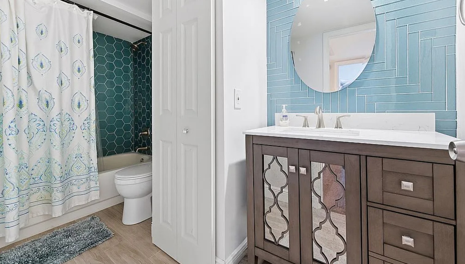 The spacious primary suite features two closets, including a walk-in closet, providing ample storage. Two additional bedrooms are bright and generously sized, creating flexible space for guests, family, or a home office.