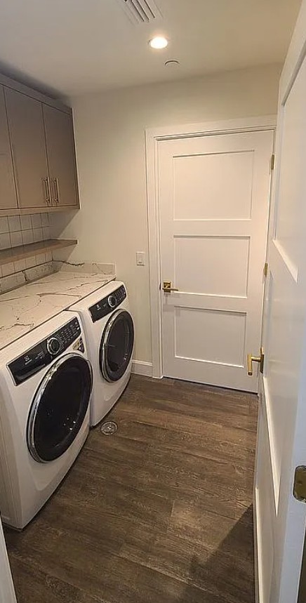 Each residence is a private corner unit with no shared walls, offering exceptional privacy and expansive 270-degree city and water views through floor-to-ceiling impact rated energy efficient windows. A private elevator opens directly into your personal foyer, creating an elegant arrival experience. Inside, the home features 10-foot ceilings with integrated LED lighting, engineered wood floors, and designer finishes throughout. Note: Some interior room images with furniture are pre-construction renderings, while unfinished room photos show the actual finishes, including dark wood flooring and cabinetry.