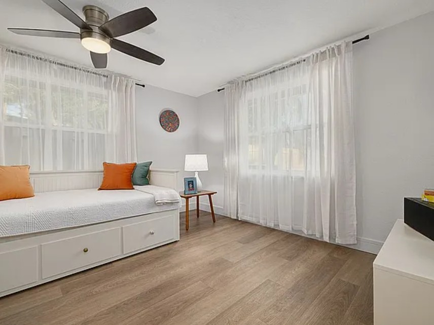 This beautifully updated 2 bedroom home for sale by owner in Saint Petersburg, Florida combines modern upgrades, inviting indoor spaces, and a relaxing outdoor retreat. From the moment you arrive, the charming curb appeal and lush tropical landscaping create a warm and welcoming first impression.