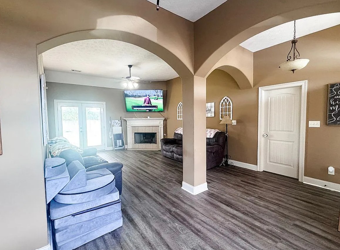Built in 2009, the home features durable luxury vinyl plank (LVP) flooring throughout, creating a stylish and low-maintenance living environment. The open and inviting layout makes the home feel bright and spacious, ideal for both everyday living and entertaining guests. The main living area includes a cozy wood-burning fireplace, adding warmth and character while creating the perfect space to relax on cooler evenings.