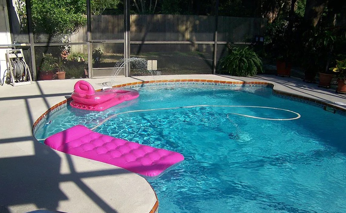 Enjoy new knockdown ceilings, orange peel texture walls, and waterproof laminate flooring throughout. Step outside to a sparkling screened pool with a large enclosed lanai, surrounded by lush landscaping and palm trees. The large indoor laundry room includes an almost-new LG front load washer and dryer.