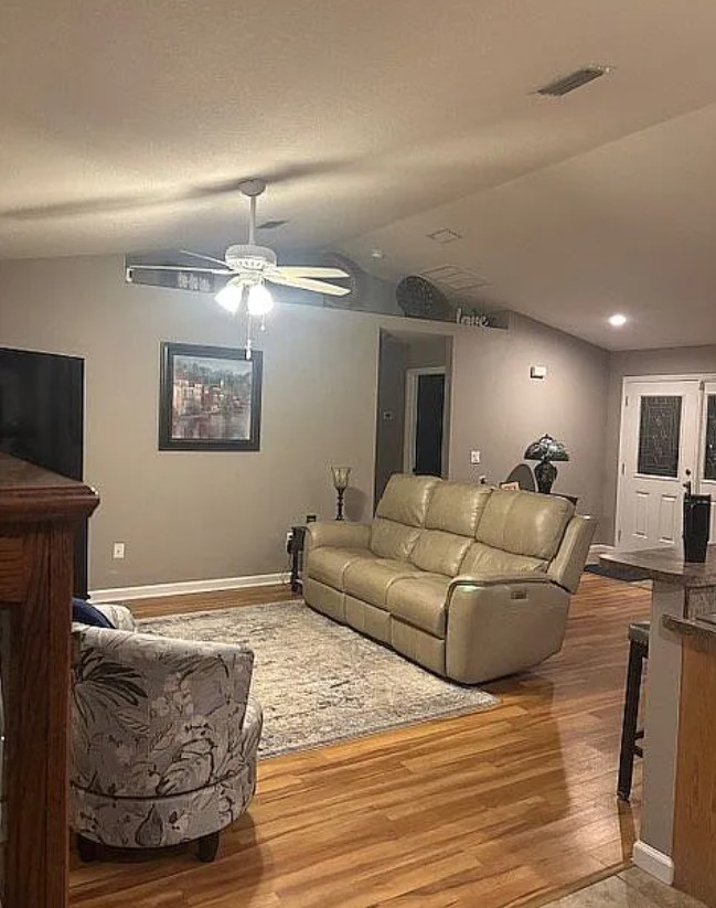 Step outside to your screened-in lanai with a ceiling fan, overlooking a large fenced backyard, perfect for pets, outdoor activities, or even adding a pool. The property sits on a tree-lined lot that provides plenty of privacy while allowing space to store a travel trailer or small boat within deed restrictions. Additional upgrades include double-pane storm windows, full gutters, and an 8x10 Americana shed for extra storage. The open dining and great room with a counter bar concept is ideal for entertaining friends and family.
