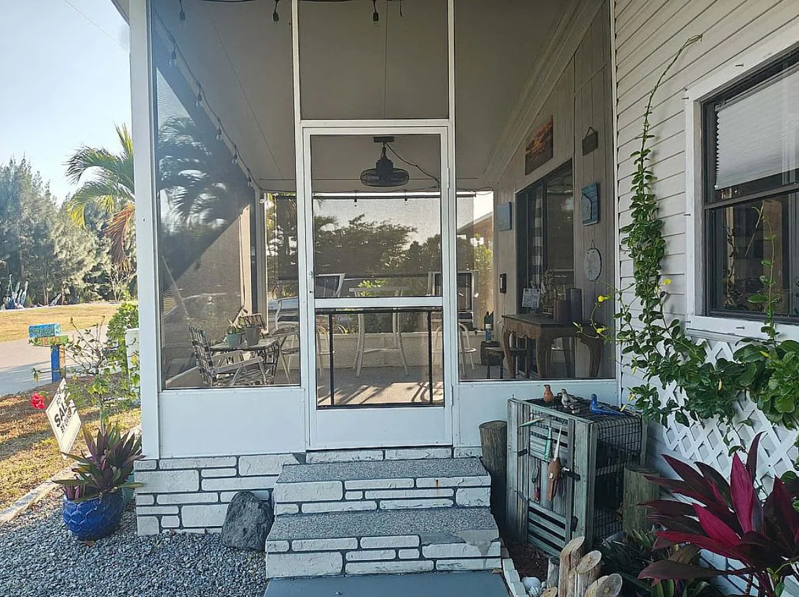 This well maintained mobile home in Pine Island Cove, Saint James City, Florida, offers comfortable living on an oversized lot with plenty of space in the backyard. Built in 1984, the home features a new A/C installed in December 2018 and a recently replaced roof, ensuring modern comfort and reliability. The carport includes an insulated composite roof that can even be walked on for easy maintenance. Inside, the home has been carefully maintained, and the enclosed porch with polycarbonate windows provides extra warmth during cooler seasons. This FSBO mobile home in Saint James City, FL combines a spacious lot, updated systems, and a well kept interior, making it a great opportunity for buyers seeking Pine Island living.