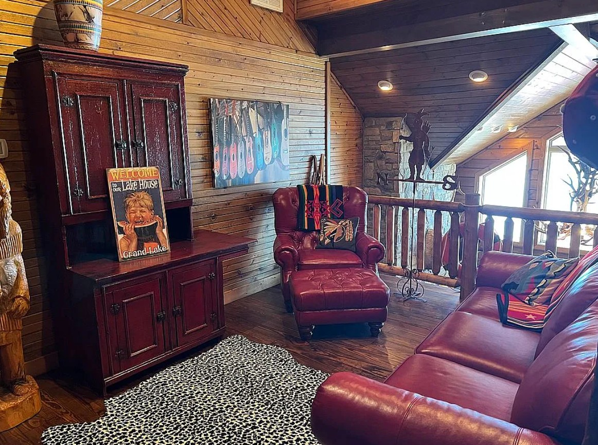 Additional highlights include a detached garage with RV hookup and move-in ready convenience. This rare waterfront retreat combines rustic charm, functionality, and an unbeatable location on Grand Lake.