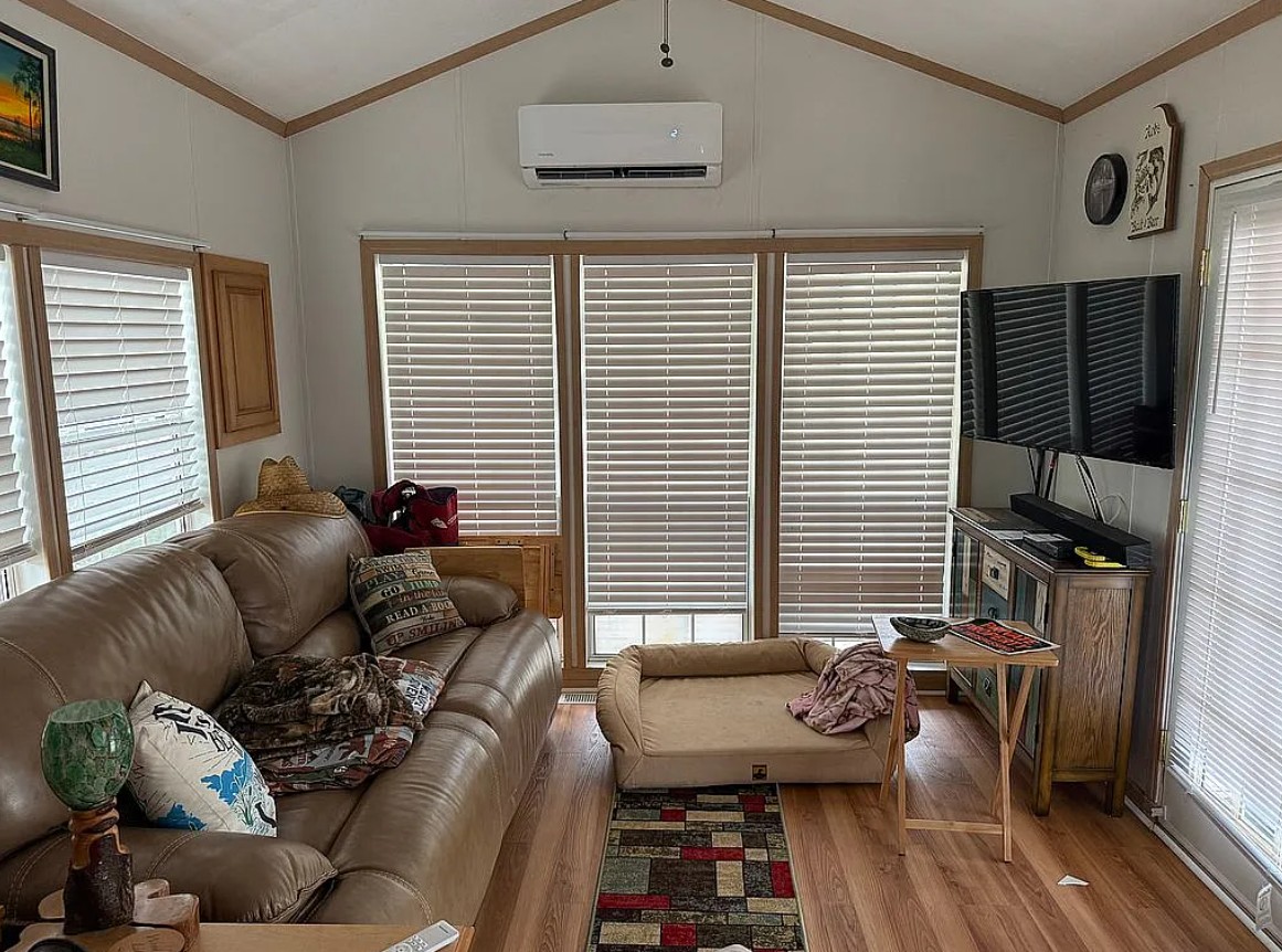 Take in stunning lake views from the elevated observation deck, or enjoy the covered area below for golf cart or bicycle parking. Inside, the home includes an ultra-efficient mini split AC/heat system with window unit backup for added comfort.