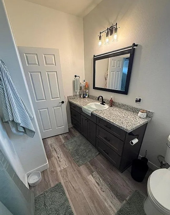 The primary suite offers a generous walk-in closet, oversized vanity, and a shower/tub combo, providing a private retreat. Two additional bedrooms provide flexibility for family, guests, or a home office.