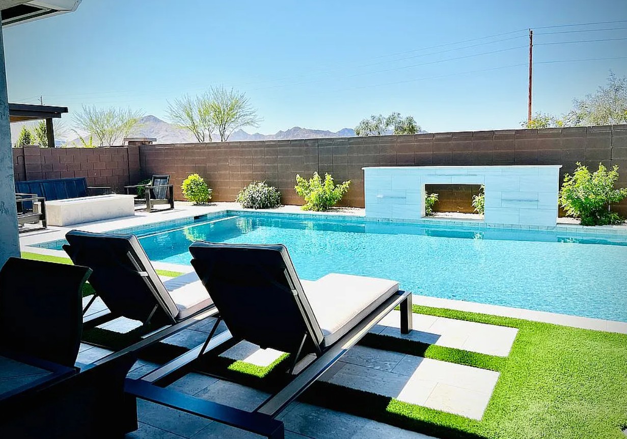 Experience the ultimate in Arizona indoor outdoor living with this stunning single-story, 4-bedroom home plus a den and flex room in the exclusive Harvest community of Queen Creek, AZ. Situated on a prime view lot within a gated neighborhood, the property offers unobstructed panoramic views of the San Tan Mountains and combines high-end architectural design with resort-style outdoor amenities. Inside, the open-concept floorplan features a grand dining area, a separate breakfast nook, and fully furnished, designer-curated interiors ideal for both entertaining and everyday family living. The den and flex room provide versatile options for a home office, media center, or private study.