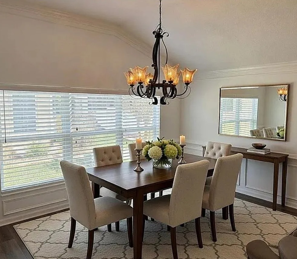 Inside, you’ll find elegant crown molding throughout, upgraded vinyl plank flooring and ceramic tile in the main living areas, and plantation shutters in the bedrooms for added style and privacy. The primary suite offers double door entry, his-and-her closets, and a luxurious Roman-style walk-in shower.