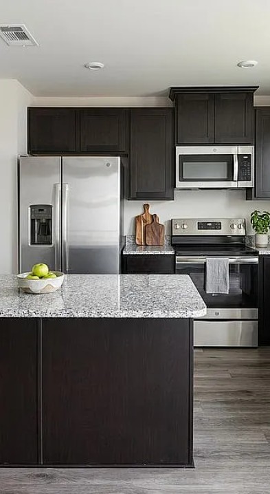 The fully equipped kitchen includes all appliances, including a refrigerator, and is beautifully finished with granite countertops, offering both style and functionality. The primary suite serves as a private retreat, complete with a spacious walk-in closet for ample storage. Two additional bedrooms provide flexible space for family, guests, or a home office.
