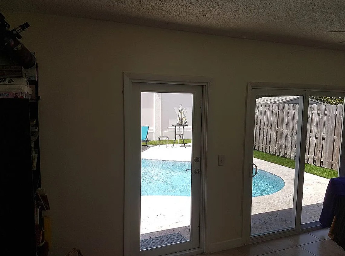 This move-in ready 3 bedroom, 2 bathroom home with mother-in-law suite in Sunrise, FL, is perfect for families seeking comfort, style, and convenience. Featuring a private kitchenette with refrigerator and washer/dryer hookups, the suite has its own entrance off the pool area, ideal for guests or extended family. The home boasts updated modern tile throughout, vaulted ceilings, ceiling fans, and abundant closet space, along with an eat-in kitchen with electric stove (convertible to gas). The master bathroom includes an accessible roll-in shower, and a fully renovated bathroom (2024) adds modern functionality.