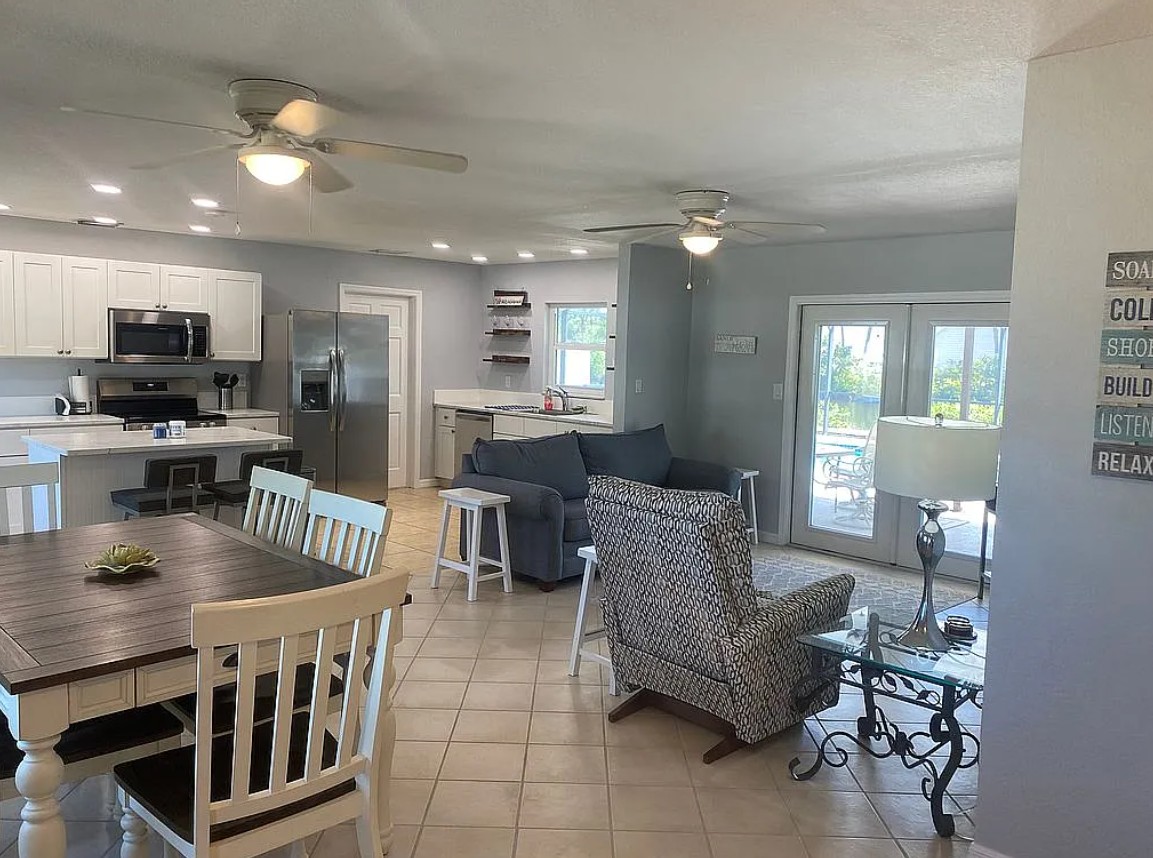 Freshly remodeled 2-bedroom home for sale by owner in Port Charlotte, FL, located on a saltwater canal with a private dock and easy access to Charlotte Harbor and the Gulf. This fully furnished, turnkey property is move-in ready just bring your clothes and groceries.