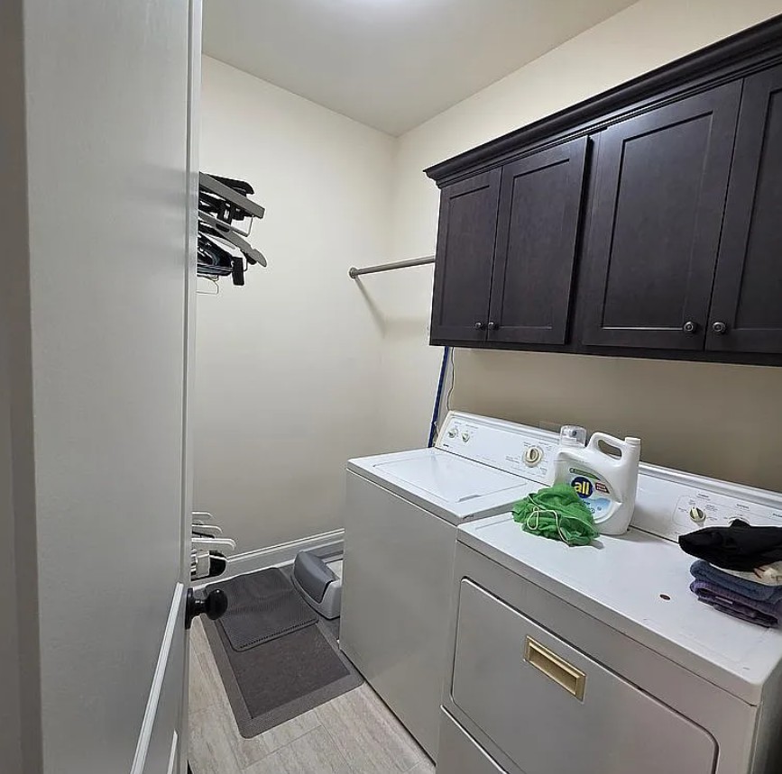 The gourmet kitchen is a standout, featuring granite countertops, soft-close cabinetry, a farmhouse apron sink, gas range, and a walk-in pantry, offering both beauty and functionality. The nearby laundry room adds convenience, located just off the primary suite.