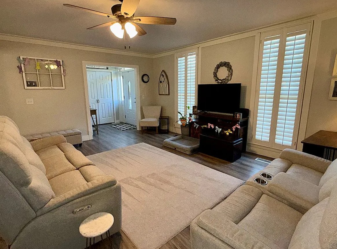 Inside, you’ll find 4 spacious bedrooms and 2 updated bathrooms, along with stylish finishes and thoughtful improvements throughout. The home features plantation shutters, adding both charm and energy efficiency.