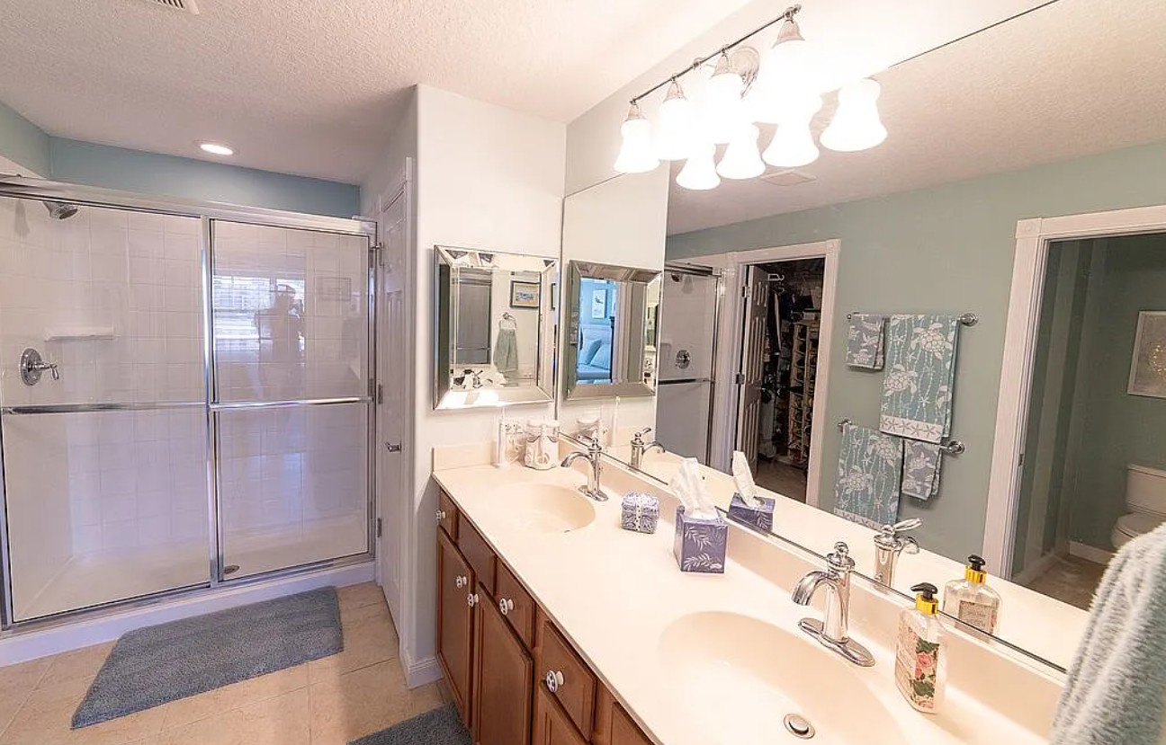 Step outside to a screened in lanai overlooking a peaceful retention pond, offering added privacy and tranquil water views. This outdoor space is perfect for relaxing or enjoying the year round Florida climate.