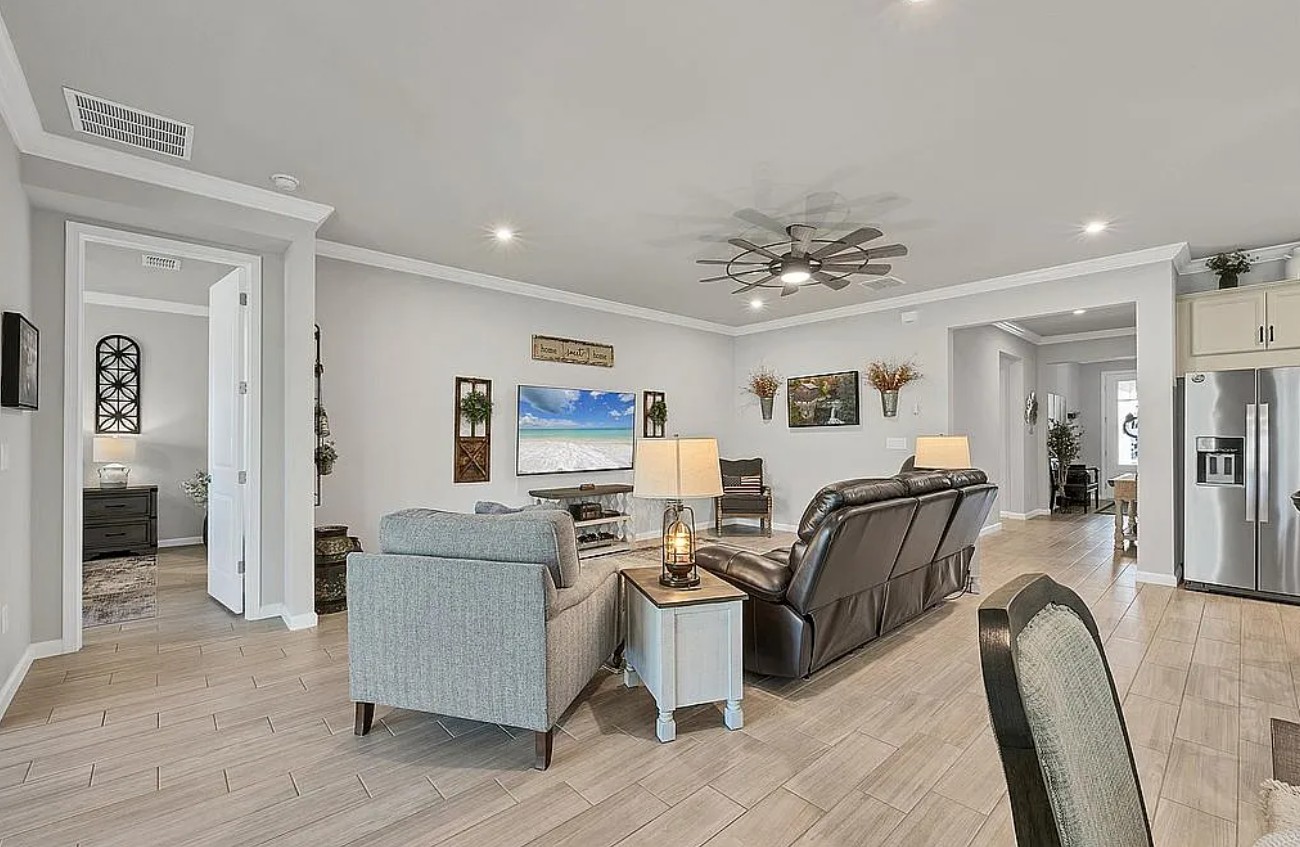This newer home features a durable tile roof, contemporary design, and an efficient layout perfect for full-time living, seasonal use, or investment. The private lot placement enhances curb appeal and minimizes through traffic, making it one of the more desirable settings within the community.