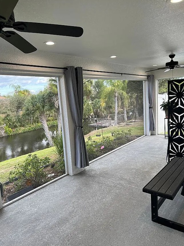 The garage is upgraded with epoxy flooring, while the recently screened-in lanai with recessed lighting provides a perfect space for relaxing or entertaining year round. Additional features include a Eufy security camera system and keyless entry for added convenience and peace of mind.