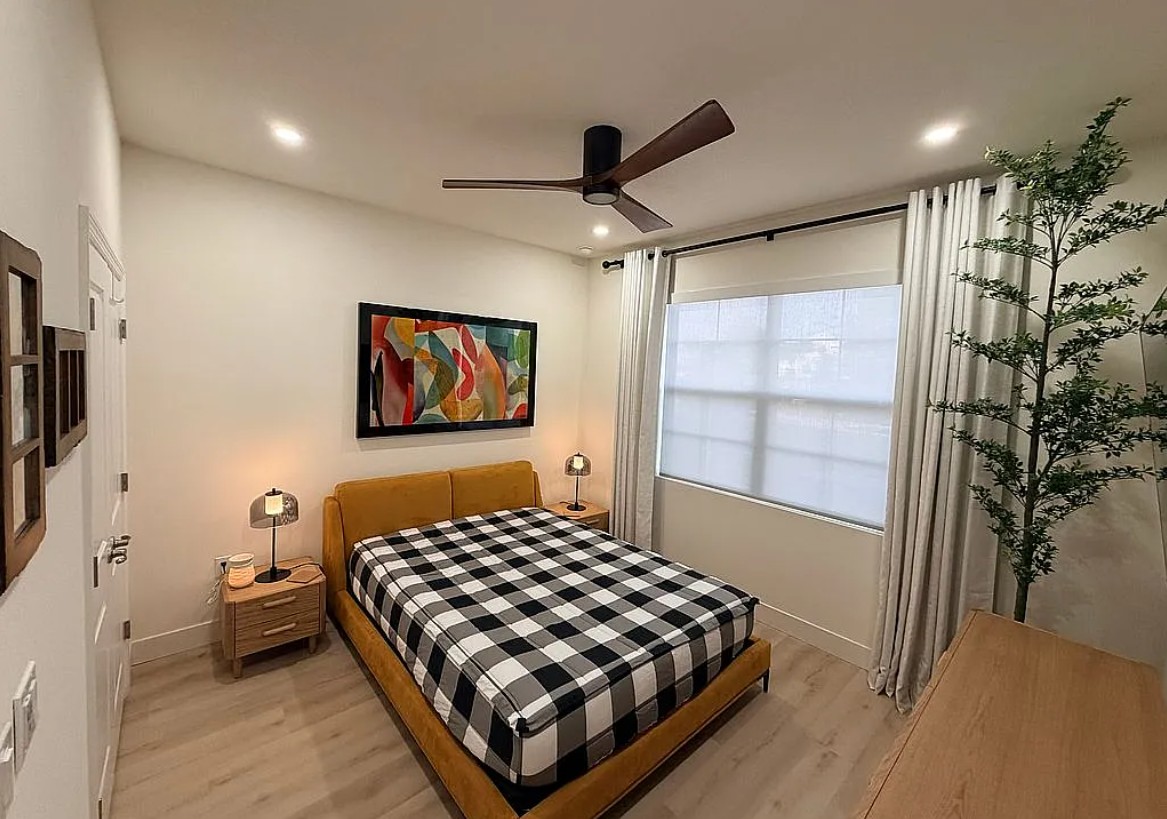 Additional upgrades include waterproof luxury vinyl plank flooring, ceramic tile in main areas, solar shades on windows, custom built-in closets, and a modern storm rated glass entry door, all contributing to both durability and style.