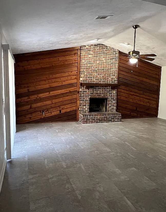 This beautifully updated 3 bedroom home for sale by owner in Tallahassee, Florida offers comfort, privacy, and character in a quiet, well established neighborhood just steps from the park at Lake Jackson. Recently upgraded and well insulated for energy efficiency and peaceful living, this home features a spacious 21’ x 14’ vaulted living room with a stunning cedar accent wall surrounding the fireplace, creating a warm and inviting focal point. The thoughtfully designed layout provides nicely arranged living spaces with generous room sizes and added privacy throughout.