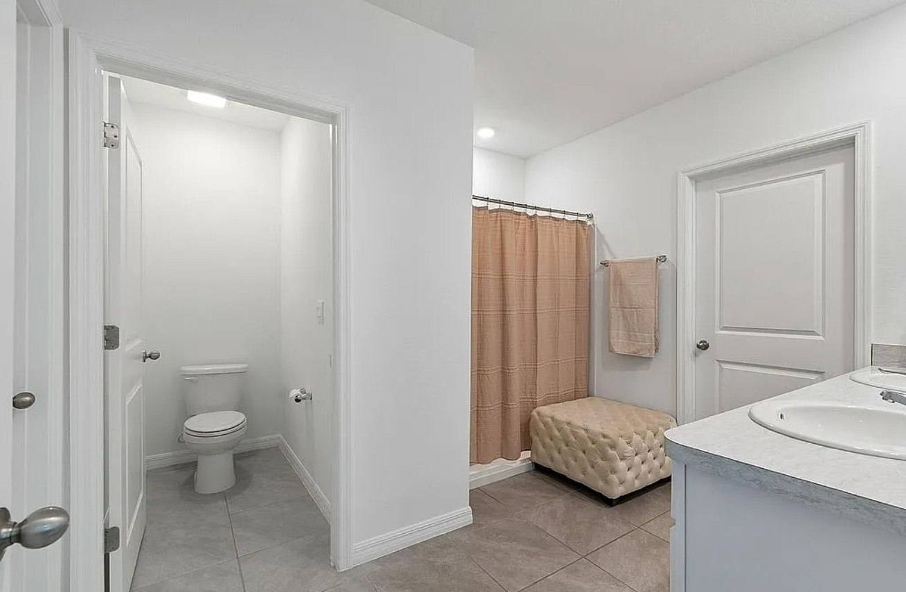 The light-filled kitchen sits at the heart of the home and overlooks the living and dining areas, featuring abundant cabinetry, generous counter space, and a seamless flow perfect for both everyday living and entertaining. A first-floor guest bedroom and full bathroom provide excellent flexibility for visitors or multi-generational living. Upstairs, you’ll find well-sized bedrooms, a versatile loft-style living area, and a spacious primary suite designed for privacy and comfort.