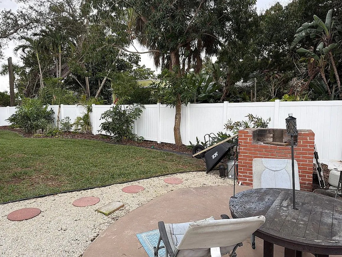 Outdoor features make this Sarasota FSBO home especially desirable, including a Rain Bird sprinkler system, newly landscaped yard, and a secure white vinyl fenced backyard with gate access perfect for pets and privacy. The property also offers paver driveway parking with dedicated space for an RV, boat, or trailer, complete with a 50 amp shore power connection and plumbing access. A brick BBQ pit in the backyard adds a great space for outdoor grilling and entertaining.