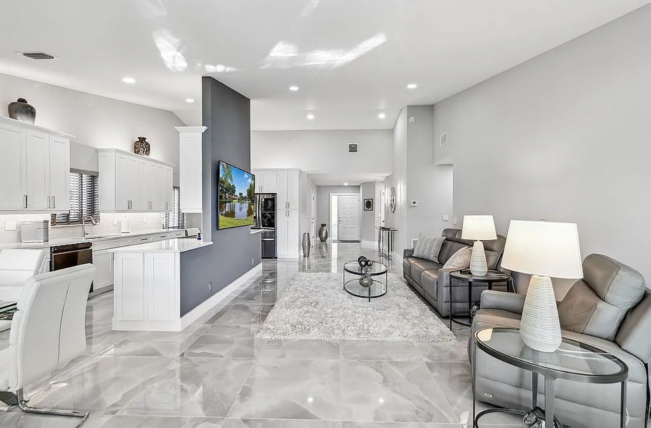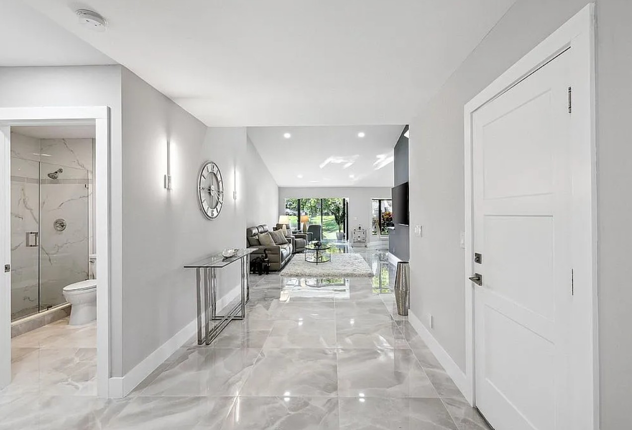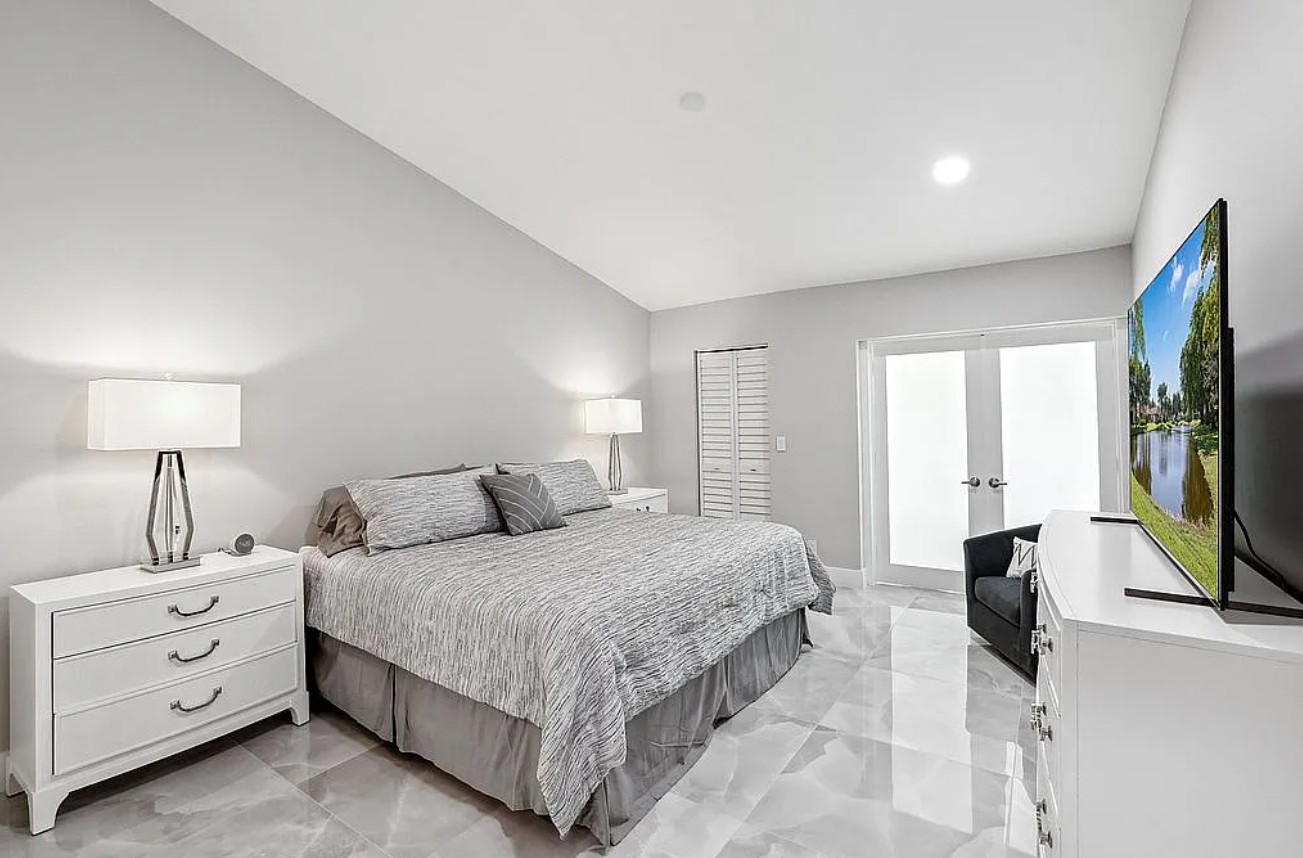 The home has been completely renovated from top to bottom with the help of a professional designer, featuring high-end materials and quality finishes throughout. Enjoy a stunning center lake view, providing a peaceful and scenic backdrop right from your home.