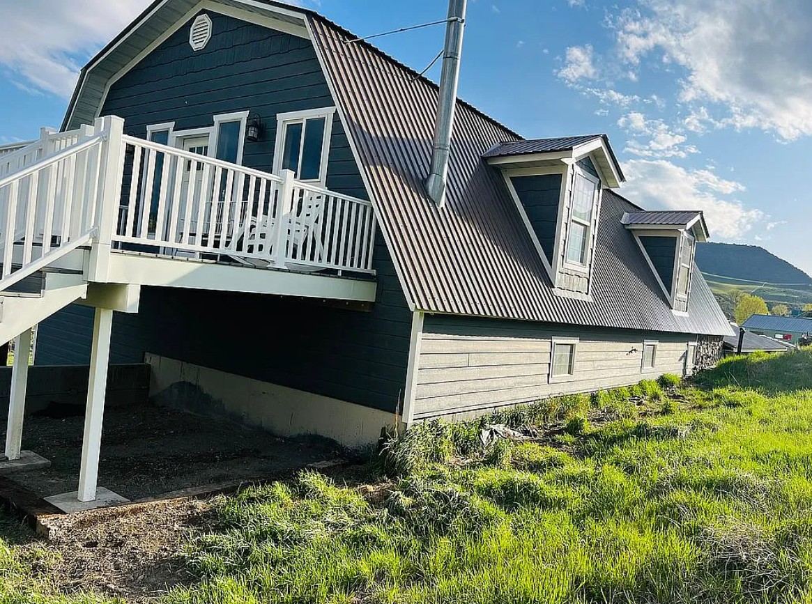 Positioned on a south-facing slope, the home benefits from easier snow melt in winter, while its mountainside location provides natural insulation for year-round efficiency. A creek just across the street adds to the peaceful setting, and the property sits at the mouth of a canyon with access to endless outdoor recreation, including dirt biking, ATV riding, snowmobiling, hunting, and shooting.