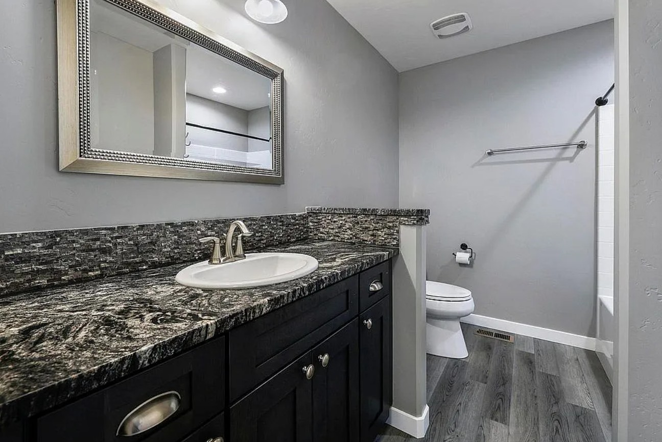 Inside, the 2,848 sq ft home features two spacious family rooms, each with a cozy gas fireplace, creating warm and inviting living spaces. The kitchen is designed for both style and function, showcasing leathered granite countertops, beautiful custom cabinetry, stainless steel appliances, and a gas range cooktop.
